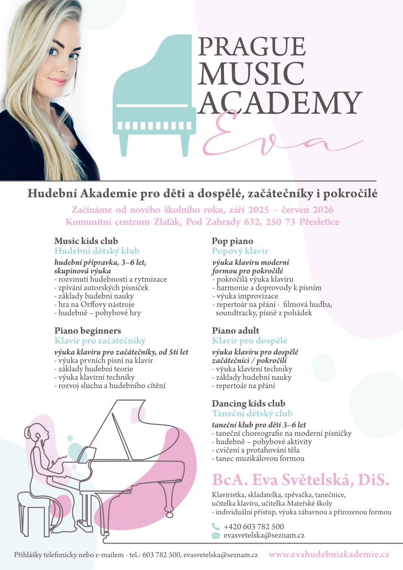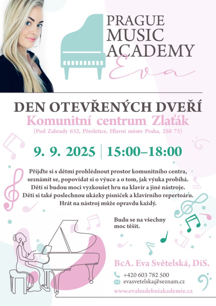 Přijďte si s dětmi prohlédnout prostor komunitního centra, seznámit se, popovídat si o výuce a o tom, jak výuka probíhá. Děti si budou moci vyzkoušet hru na klavír a jiné nástroje. Děti si také poslechnou ukázky písniček a klavírního repertoáru. Hrát na nástroj může opravdu každý.Budu se na všechny moc těšit 🙂